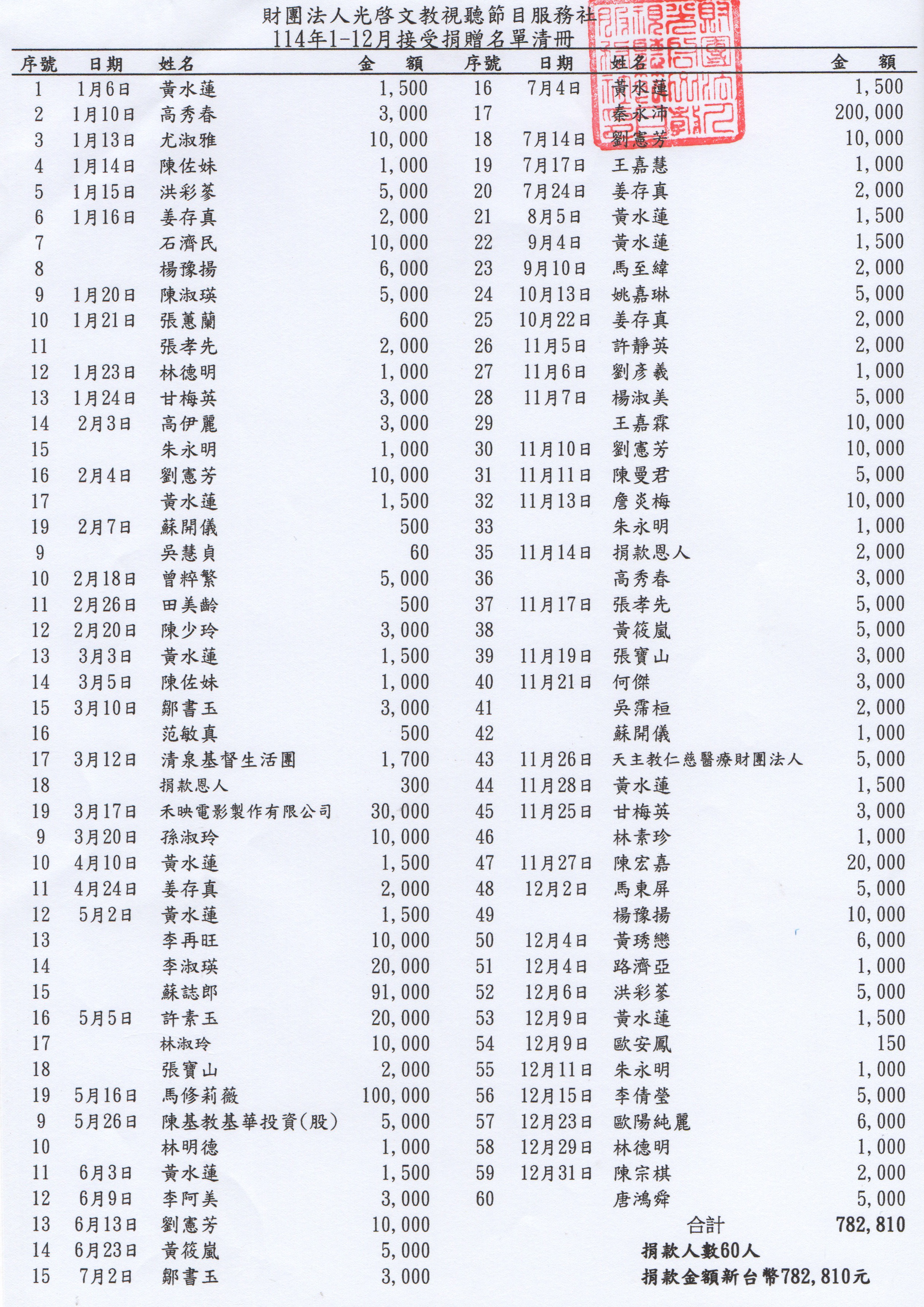 衷心感謝所有恩人的慷慨捐款,支持光啟社的影音福傳工作。 願上主祝福您平安健康,恩寵滿滿。 107年度 108年度 109年度 110年度 111年度 112年度 113年度 114年度 115年度 116年度